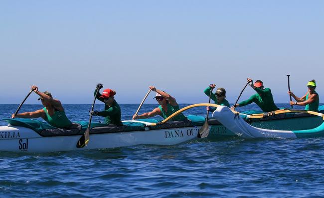 "Noho Ho'okele" is for OC6 Hawaiian outrigger canoe steering use in seat 6. The simple, robust Huli strap around the flat canoe seat prevents loss in the ocean during a huli. The strap can secure loose items too.