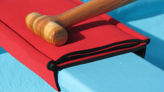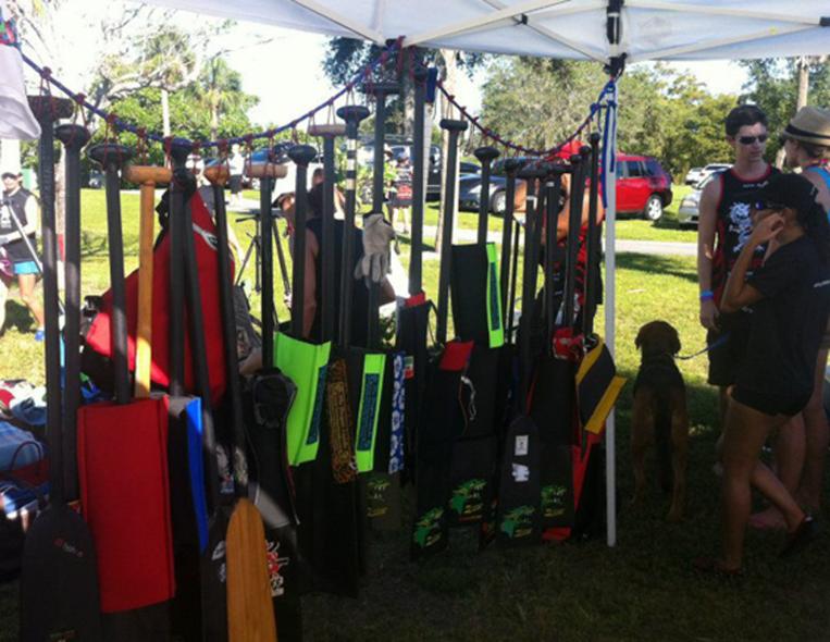 They slide over the paddle shafts or over your arm, hands-free when marshalling.