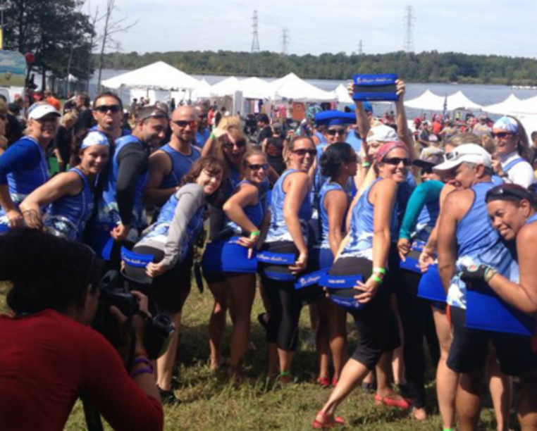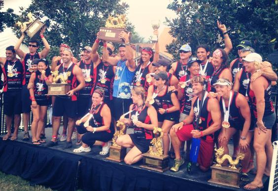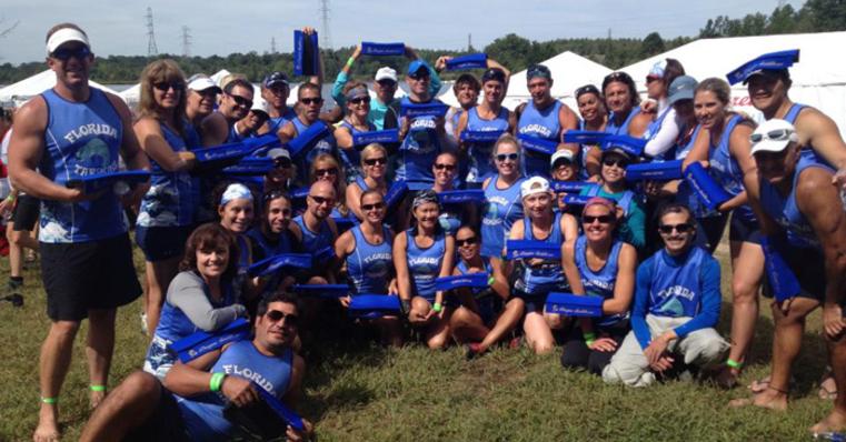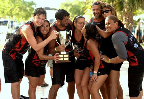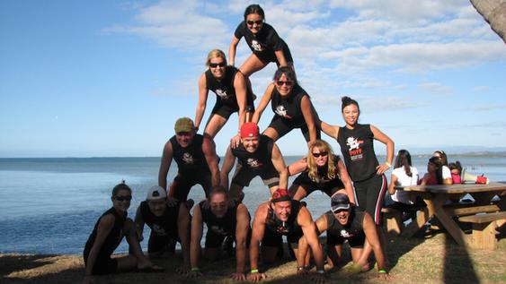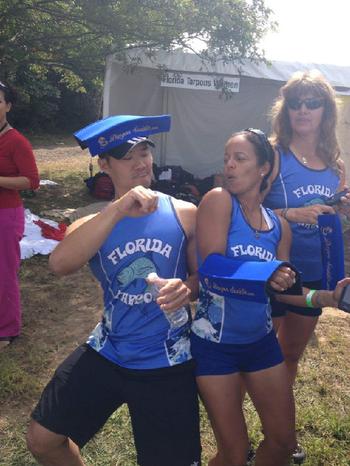 Dragon boat teams have a strong social component. Here we are at Salinas, Puerto Rico, Doug with green cap.